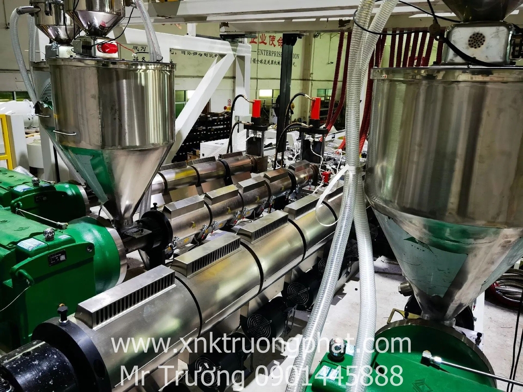 Bước 2: Đưa hỗn hợp vào máy ép đùn và đun nóng ở nhiệt độ khoảng 200 – 275 độ C cho nóng chảy. Đưa hỗn hợp sau khi nung chảy qua màng lọc là tấm lưới kim loại để loại bỏ tạp chất và những phần nguyên liệu chưa kịp nóng chảy.