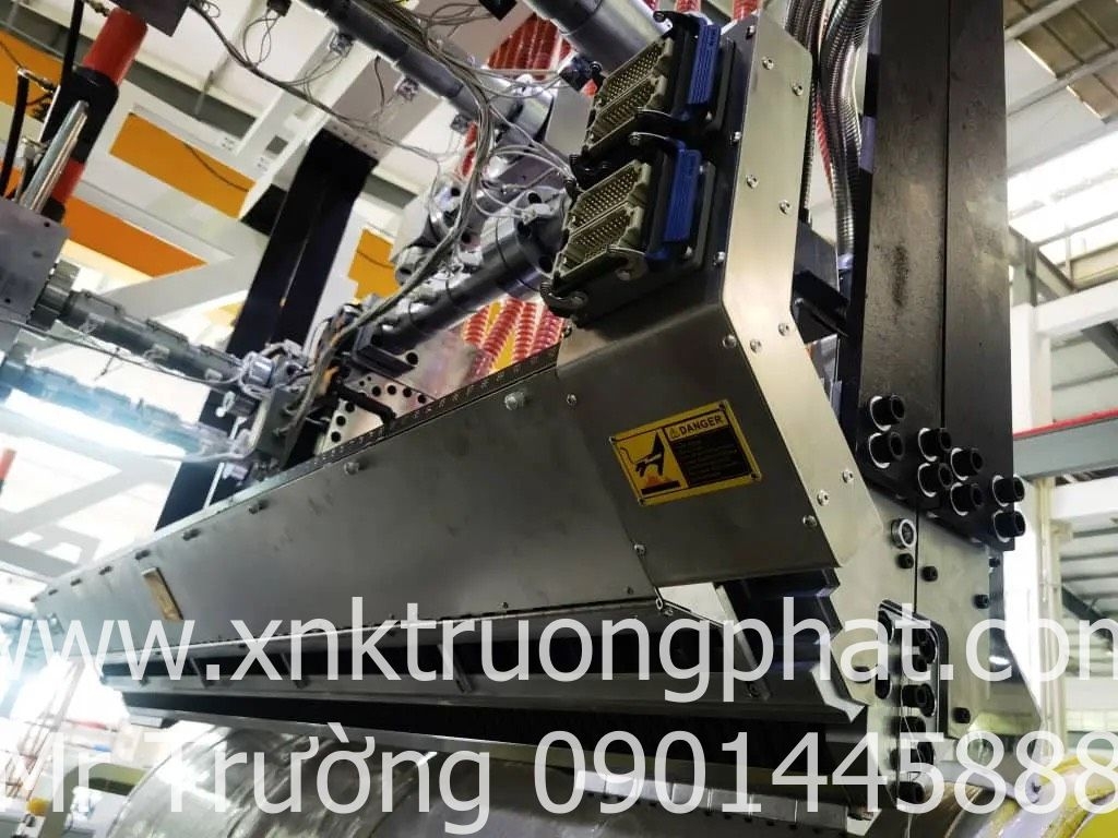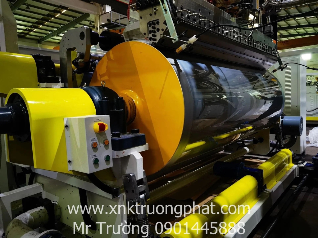 Bước 4: Nhựa nóng chảy qua khuôn chữ T sẽ được đưa vào các trục cán tạo màng để định hình kích thước lớn nhỏ và độ dày mỏng của màng PE.