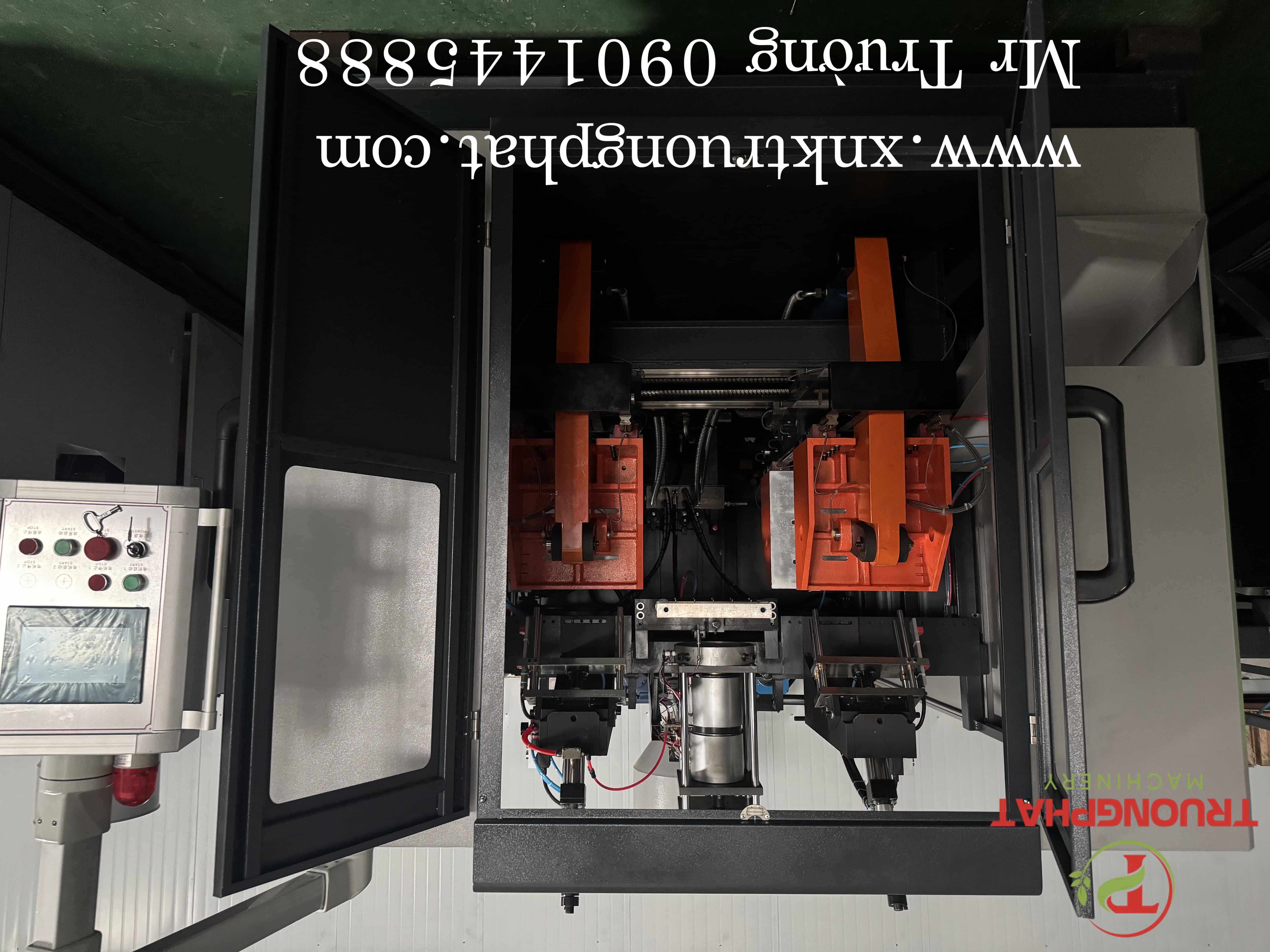 Máy thổi can nhựa 2 kìm: năng suất cao, có thể thổi 2 sản phẩm cùng lúc.
